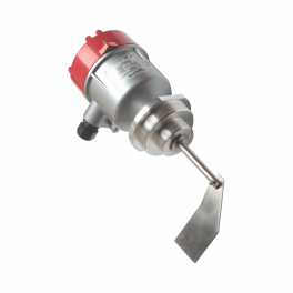 Лопасть датчика приводится в действие двигателем, при контакте вращающейся лопасти с контролируемым продуктом двигатель останавливается. Возникший реактивный момент приводит в действие микровыключатель, который формирует выходной сигнал (регистрируется достижение контролируемого уровня продукта). При снижении уровня продукта и освобождении лопасти двигатель возвращается в исходное положение пружиной и снова включается.